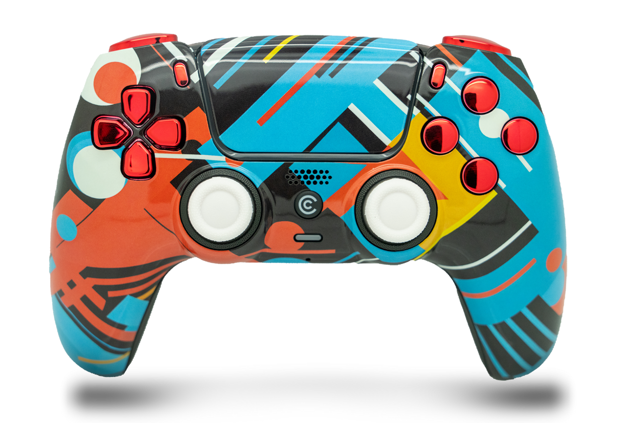 - DOMINATE YOUR GAME: Take your gaming sessions to the next level with Custom Controllerzz Abstract Fusion & Red Chrome Inserts Custom Wireless Controller, the ultimate compliment for your PS5 or PC setup.
