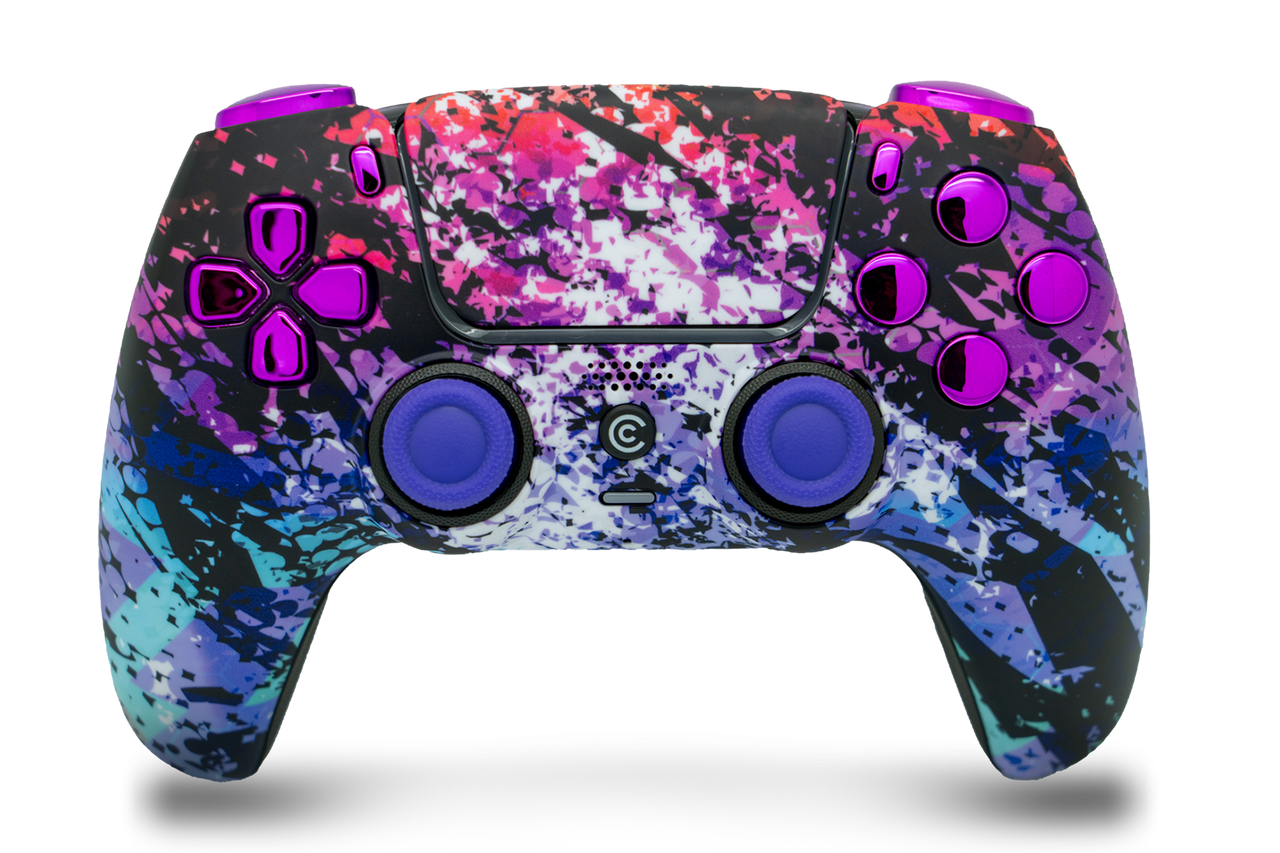 - DOMINATE YOUR GAME: Take your gaming sessions to the next level with Custom Controllerzz Digital Mirage & Purple Chrome Inserts Custom Wireless Controller, the ultimate compliment for your PS5 or PC setup.