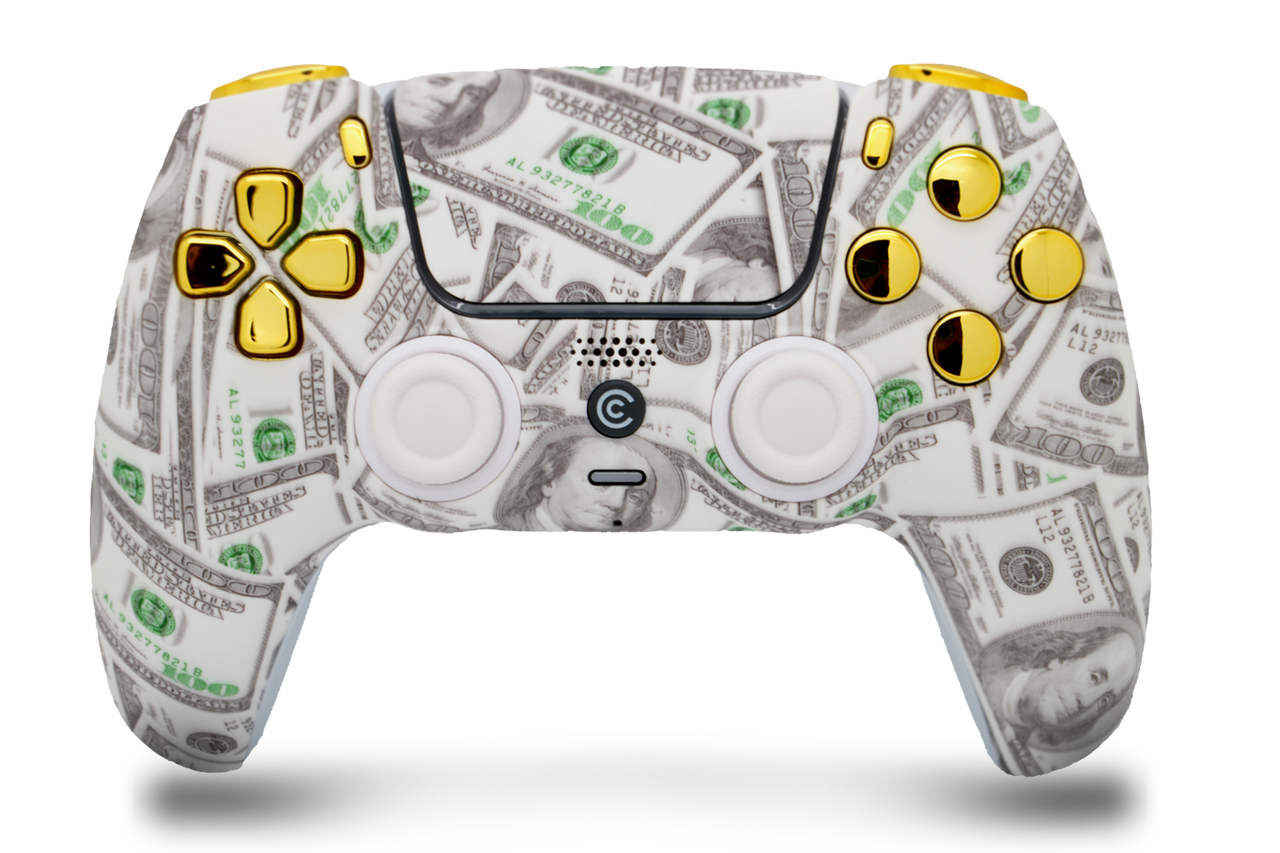 - DOMINATE YOUR GAME: Take your gaming sessions to the next level with Custom Controllerzz Money & Gold Chrome Inserts Custom Wireless Controller, the ultimate compliment for your PS5 or PC setup.