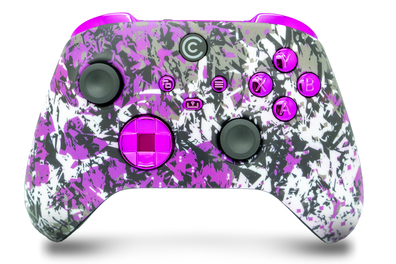 Elevate your gaming setup with the Shadow Bloom Xbox Series X/S Controller, featuring striking Purple Chrome inserts. Built for Xbox Series X/S, Xbox One, and PC, available exclusively from Custom Controllerzz.